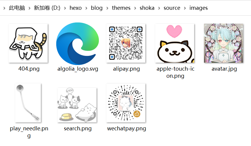 根据作者的说明,默认图片放在了 <root>/themes/shoka/_images.yml 文件中( D:/hexo/blog/themes/shoka/_images.yml )